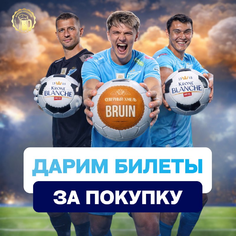 ⚽️РАЗЫГРЫВАЕМ БИЛЕТЫ НА МАТЧ ЗЕНИТА! Любите пиво и футбол? Тогда эта акция для вас 👇 С 6 марта по 31 марта покупайте разливное пиво Krone Blanch и Северный Хмель BRUIN и участвуйте в розыгрыше биле