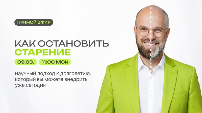 ▶️ Как остановить старение? Хотите продлить молодость, улучшить состояние здоровья и повысить уровень энергии? ⚡️ 9 марта в 11:00 Мск жду вас на безоплатном вводном эфире интенсива «ПРО ДОЛГОЛЕТИЕ»