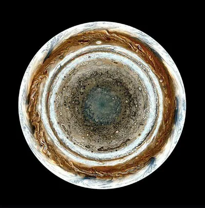 Северный и южный полюса Юпитера Первый снимок PIA0773, полученный космическим аппаратом Juno, демонстрирует северный полюс Юпитера. Второе изображение PIA07784 — его южный полюс. Magic Universe 🌌