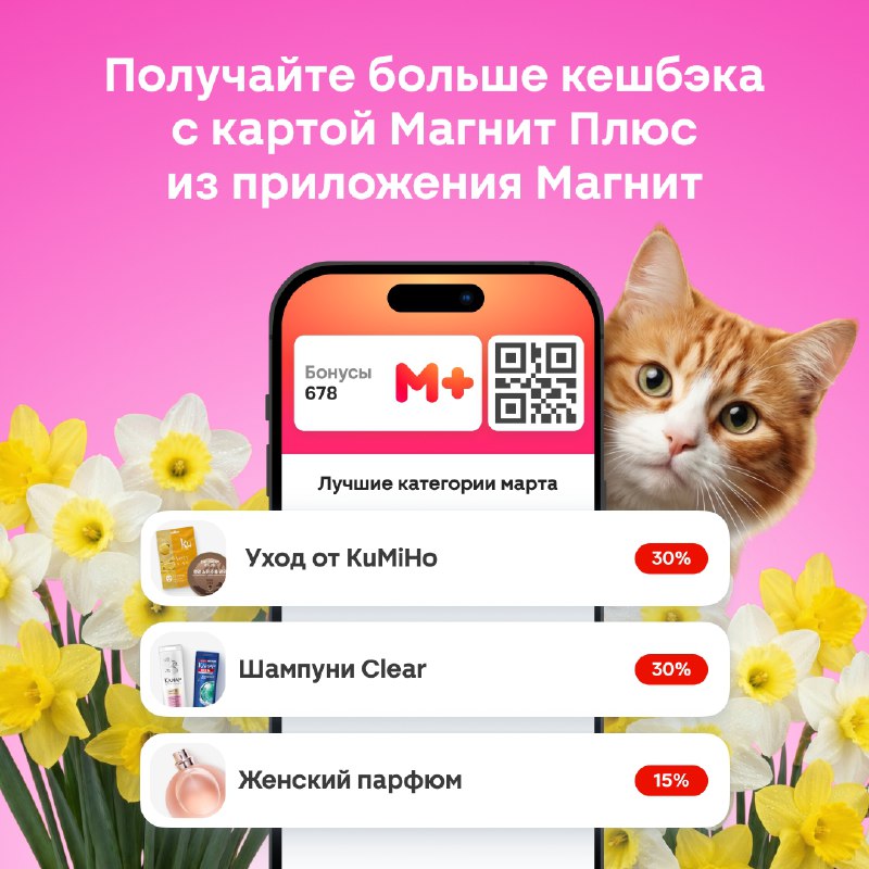 Магнит Косметик Милые леди, март! Всё для вашей красоты и наслаждения в эту прекрасную пору вдохновения, любви и горящих глаз мы подготовили в новых Любимых категориях Вернуть бонусами потраченно