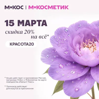 Магнит Косметик У нас есть доказательство, что вы имеете много общего с КРАСОТОЙ. А у вас есть право ни в чём себе не отказывать В воскресенье, 15 марта, во всех магазинах М.Косметик и М.Кос и в пр