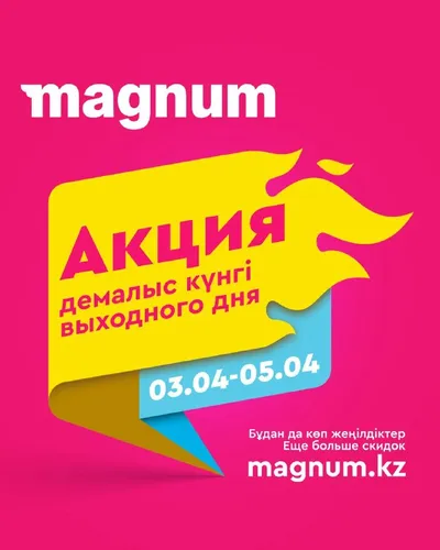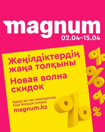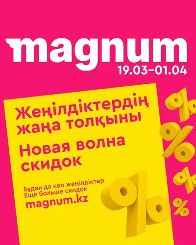 Жаңа апта – жаңа жеңілдіктер! Magnum-да супер тиімді ұсыныстар сізді күтуде! 🤩 26 наурыздан 1 сәуірге дейін тауарларды 60%-ға дейінгі жеңілдікпен сатып алыңыз! 😍 Magnum – әрдайым тиімді. 🔁 Нов