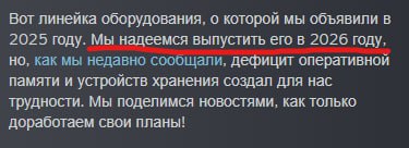 Valve в своих итогах 2025 года сообщили, что планируют выпустить всю линейку анонсированных устройств (т.е. Steam Controller, Steam Machine и Steam Frame) в этом году.