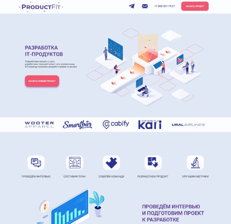 Landing page - Разработка IT продуктов Тематика: #IT_технологии Формат сайта: #Многостраничный_сайт Ссылка: Скачать макет