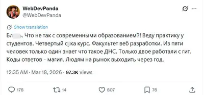 В сфере образования всё слишком плохо — студенты на факультете веб-разработки не знают, что такое DNS. Они подставные — на 4 курсе никто на пары не ходит ☺️