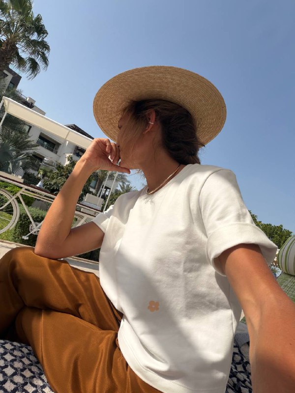 клево, что принт сделали не на груди (как у всех)), а внизу . идешь такой, а у тебя цветочек на ребре 🧚♀️ и его форма тоже не идеальная, а ‘случайная’) футболка есть еще в оливковом цвете