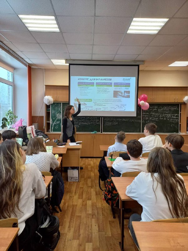 Официально заняли учительское кресло😈 На днях Аникина Соня от лица «Мам, я буду финалистом» выступила в 38 гимназии в Дзержинске, Нижегородской области. ➡️Рассказала ребятам про «Большую перемену»,