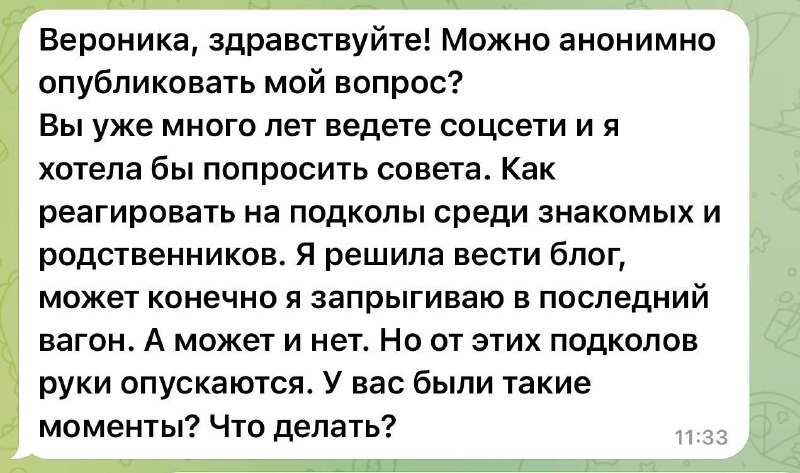 Девочки, с этим сталкивается абсолютно любой человек, который начинает вести соцсети. Я не знаю почему люди подкалывают. Наверное, они хотели бы также, но просто не могут. Мне кажется, что все думают