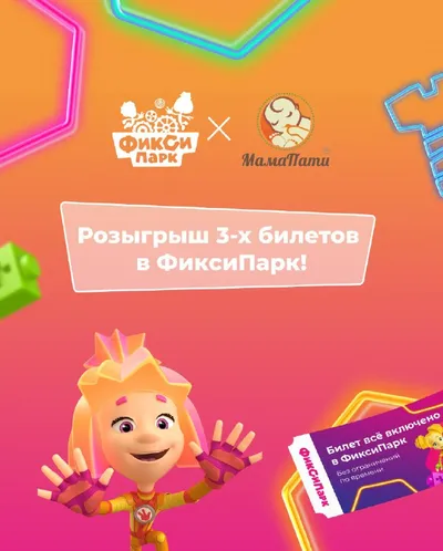 Конкурс от нашего информационного партнера 🎉🎊🎉 🎁 ДАРИМ 3 безлимитных билета в ФиксиПарк Первый в России игровой парк по мотивам любимого мультфильма. Вас ждут: 👏Игровые интерактивные зоны, ✨Фи