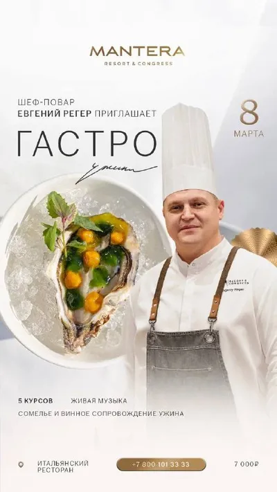 Март — время пробуждения и новых впечатлений 🌸 Гастроужин с шеф-поваром Евгением Регером в Mantera Resort & Congress, концерты любимых артистов, яркий фестиваль «Айда» в Сочи Парке и атмосферные экс