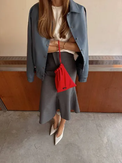 Ко мне пришел невероятной красоты бомбер от Karpov. Вы только посмотрите на этот красивый оттенок — цвет морской волны. Я влюблена. Этот цвет очень красиво смотрится с серым, на контрасте с красным, ч
