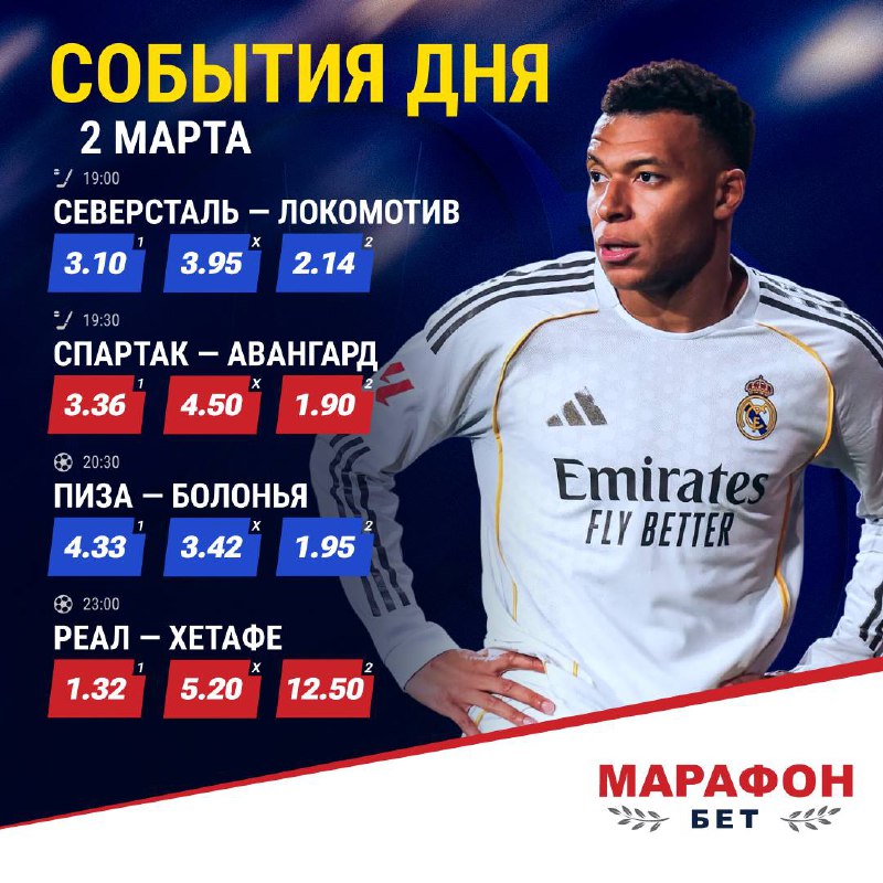 🔥 Новая неделя с Ла Лигой, Серией А и КХЛ! 📍«Локомотив» идёт на серии из пяти побед. 📍 «Спартак» выиграл три последних матча. 📍 «Пиза» ни разу не победила в последних 15 играх. 📍 «Реал» обыгр