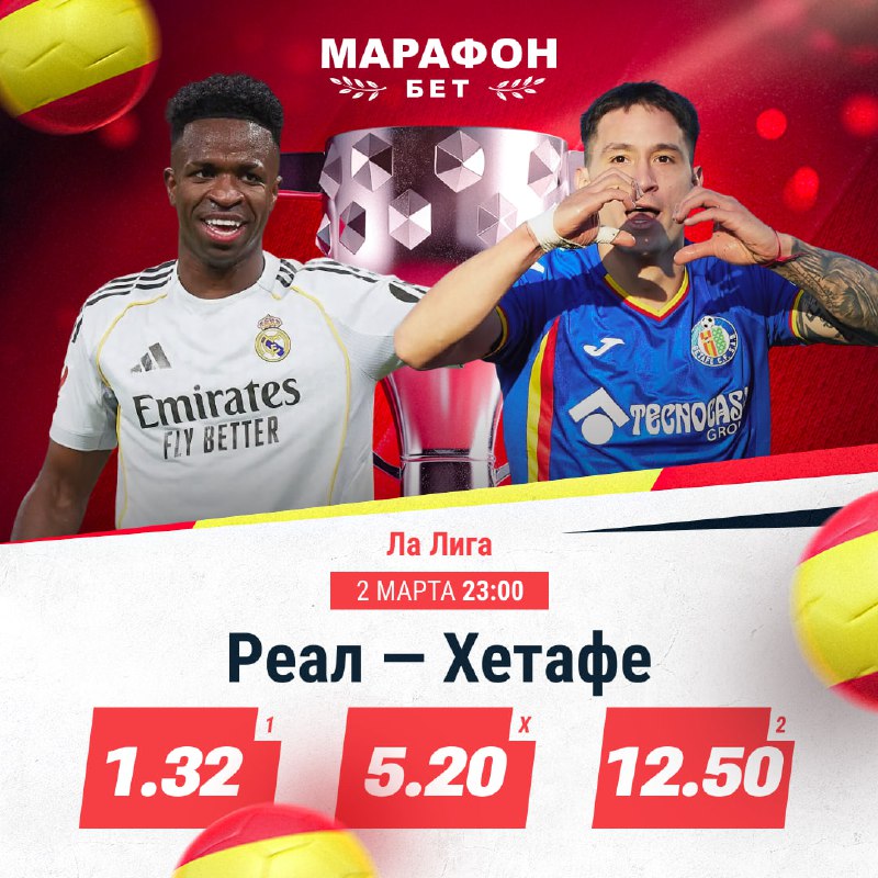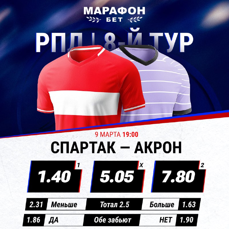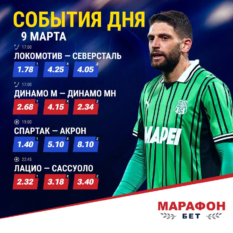 СпортОфициальный канал БК «Марафон» 🎁 Бонус 25 000 ₽ новым клиентам: https://vk.cc/cPxjgt Пари на спорт по лучшим коэффициентам с 1997 г. Номер заявления на регистрацию канала в РКН - 6164087153