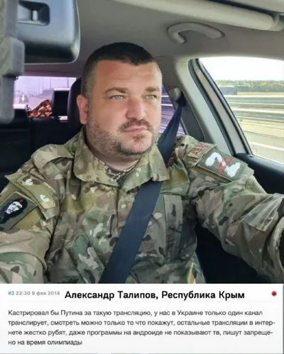Кто это грозное мачо? Этот швирепый и непримиримый человек, который ходит в тылу боевом камуфляже? Кто объявил себя в Крыму СМЕРШем, карательным отрядом и угрожает сейчас московским журналистам и бло