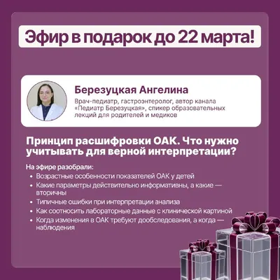 Как не ошибиться при интерпретации ОАК у ребёнка 🤷♀️ Отдаем бесплатно разбор анализа крови при покупке курса «Амбулаторная педиатрия» ❗️С 16 по 22 марта запись эфира из платной подписки MD School➕