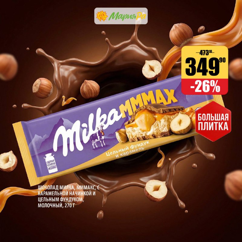 Нежный молочный шоколад, карамель и цельный фундук - та самая комбинация, к которой хочется возвращаться снова и снова ✨ Большая плитка 270 г - чтобы хватило для всех😉 Сейчас по выгодной цене - само