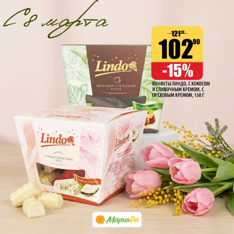 Нет идей для подарка? Нажимайте на фото ➡️ мы уже всё подобрали 🎁 К 8 Марта в Мария-Ра - сладкие подарки, которые точно поднимут настроение🌷 Красиво, вкусно и со скидками. Остаётся только выбрат