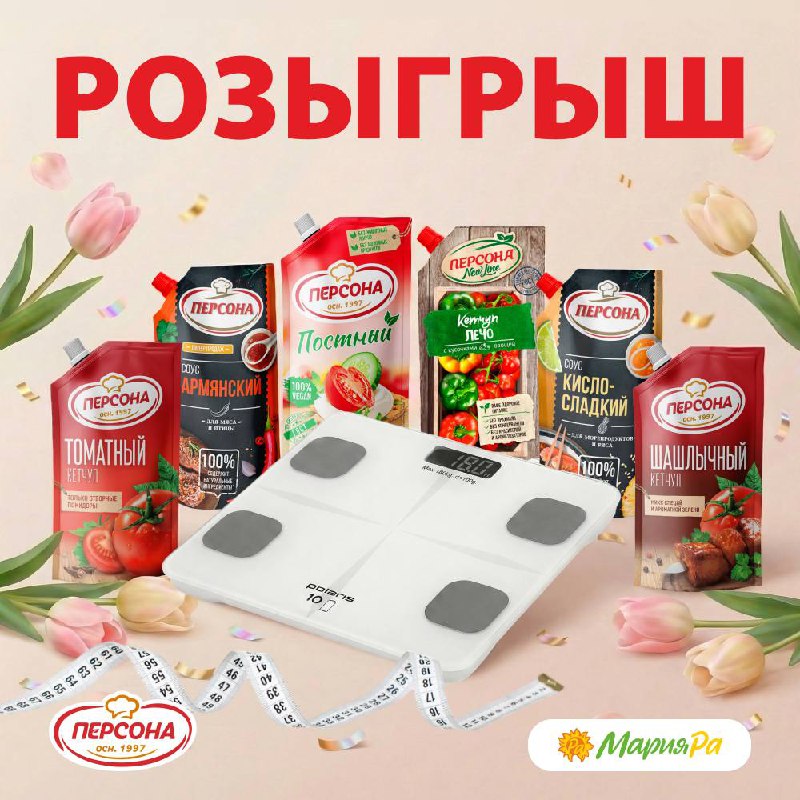 🌷 Праздничный розыгрыш к 8 марта Мария-Ра и Персона решили сделать весну ещё приятнее и подготовили подарок для наших подписчиков 🎁 В розыгрыше: ✨ умные весы с анализом тела по 14 параметрам ✨ наб