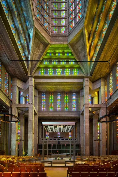 Архитектор Огюст Перре, уже известный вам по этому дому, создал во Франции две фантастические церкви. Одна из них в Гавре, городе, который после Второй мировой войны полностью был отстроен по его прое