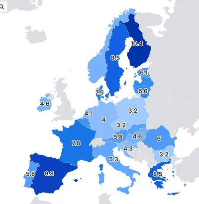 Во Франции безработица остаётся одной из самых высоких в Европе, страна стабильно входит в топ-5. Сейчас уровень ~ 7,8%, и в последние месяцы он начал расти. #профранцузов Компании осторожнее нанимаю