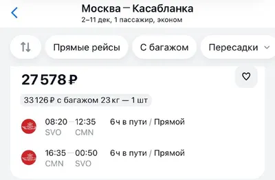 ✈️ Москва - Касабланка туда-обратно за 27.600 (по 13.800 р в одну сторону) в декабре много дат ссылка
