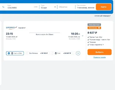 🤩Москва - Шри-Ланка за 8.600 р прямой рейс Аэрофлот в мае ссылка