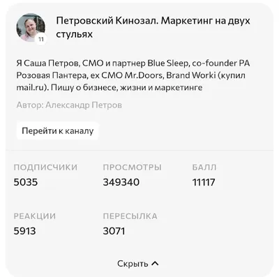 Узнал благодаря Диме Кивенко, он вошел в топ 3 каналов по HR Я занял 11 место в рейтинге каналов про маркетинг kokoc.tech Я пишу чисто от души, подхожу к каждому посту вдумчиво и очень рад, что кому