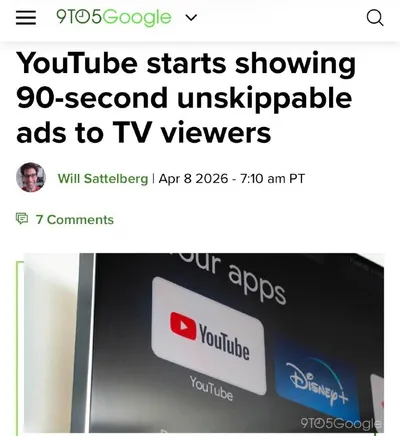 YouTube ввел рекламу длиной в 90 секунд, которую нельзя пропустить. По факту YouTube превращается в полноценный телевизор — большие рекламные блоки, которые приходится терпеть. При этом система на