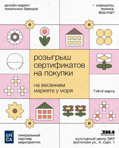 Разыгрываем 10 сертификатов на покупки на большом весеннем Маркете у Моря в Культурном центре ЗИЛ 7+8+9 марта! Маркет у Моря при поддержке генерального партнера — бренда йогуртов EPICA — дарит гостям
