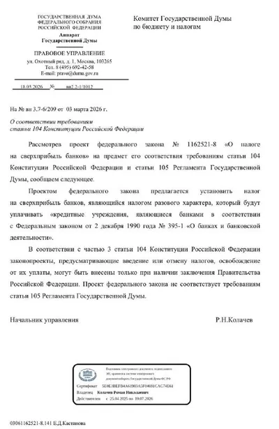 🏦 Налог на сверхприбыль банков (очередной отказ) Помните пост про четвёртую попытку "Справедливой России" провести 10% налог на сверхприбыль банков? Прошло чуть больше двух недель и Правовое управл