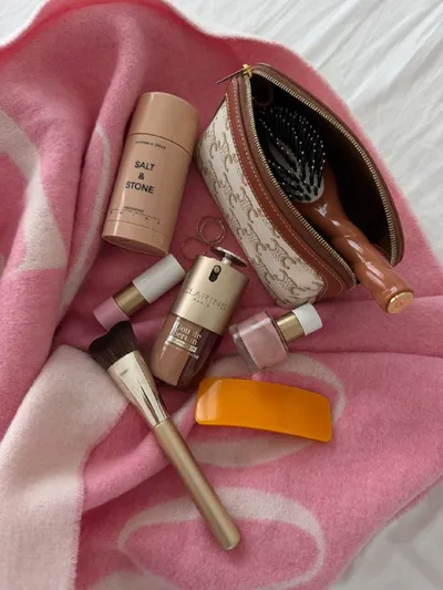 На фото любимый дезодорант Salt&Stone, которому я не изменяю. Можете, кстати, попробовать купить сначала в маленьком формате. Это мой любимый аромат у бренда. Мой бальзам для губ Hermes, с легким розо