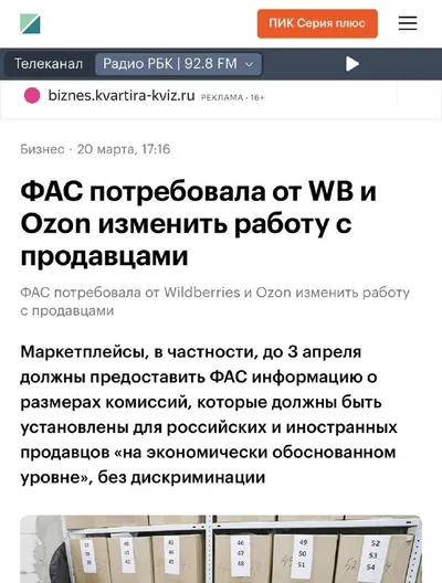 🔥🔥🔥 Комиссии сравняют! https://www.retail.ru/news/fas-predpisala-wildberries-i-ozon-uravnyat-komissii-dlya-rossiyskikh-i-inostrann-20-marta-2026-275793/ Теперь у всех будут высокие😁
