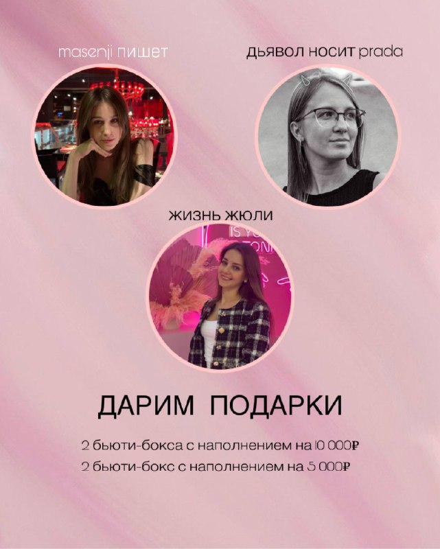 Девочки, у нас с подругами-блогерами для вас подарок 🎁 Объявляем розыгрыш четырех бьюти-боксов! Как участвовать: 🍭 Подпишитесь на наши каналы: @masenjiblog @valerika_photobeauty @yulyashabanochki