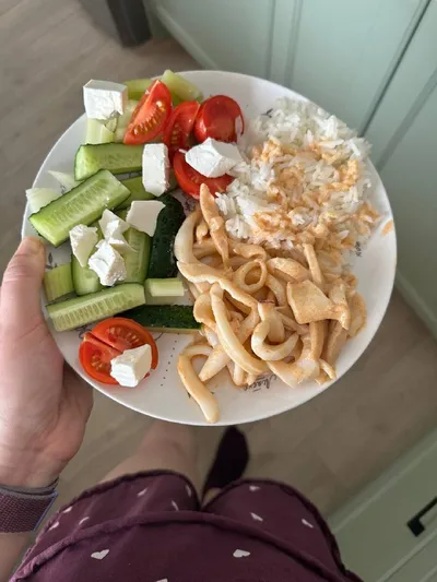 Сегодня у меня обед в стиле Азии 🤭 Рис с кальмарами в соусе Том-Ям. Этот соус просто пушка 🔥 Покупала его для супа. Вот тут рецепт оставляла: https://t.me/mashanefedova/1874 Его прям совсем немн