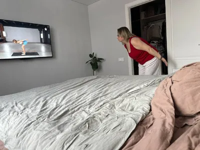 Делать зарядки намного проще, чем готовить и есть рыбу, но у меня максимально серьезное лицо в моменты тренировок 😅 Блин, мне так нравится, что на зарядки вообще не нужно много места. Я сначала в г
