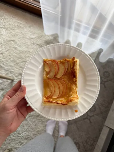 Пирог, который вы точно испечете в следующие выходные 🥧 Слоеное бездрожжевое тесто Абрикосовый джем Яблоки Лимонный сок Сахар Слоеное тесто раскатываем неприлично тонко, яблочки нарезаем также. Сб