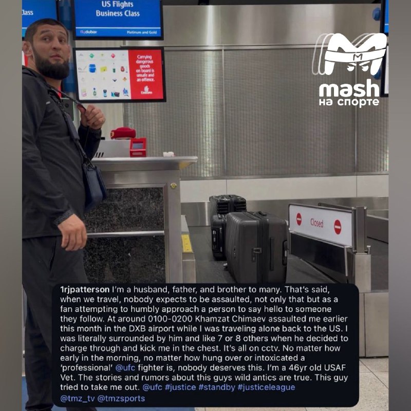 Хамзата Чимаева обвинили в нападении на ветерана ВВС США в аэропорту Дублина. Об этом рассказал сам бывший военный. С его слов, боец UFC и друг Нурлана Сабурова, которому запретили въезд в Россию на