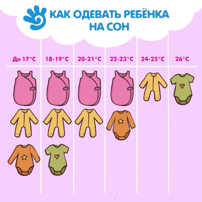 В продолжение темы комфорта малышей сохраняйте памятку и пересылайте знакомым мамам💛 Ставьте ❤️если памятка полезна И еще немного о малышовой одежде⬇️ Рекомендуемая педиатрами температура воздуха