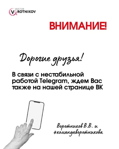 Мы очень дорожим нашим сложившимся большим сообществом , вашим вниманием ! Чтобы не потерять связь с нами , подключайтесь во ВК к нам : https://vk.ru/dr.v.vorotnikov Далее мы создадим резервные