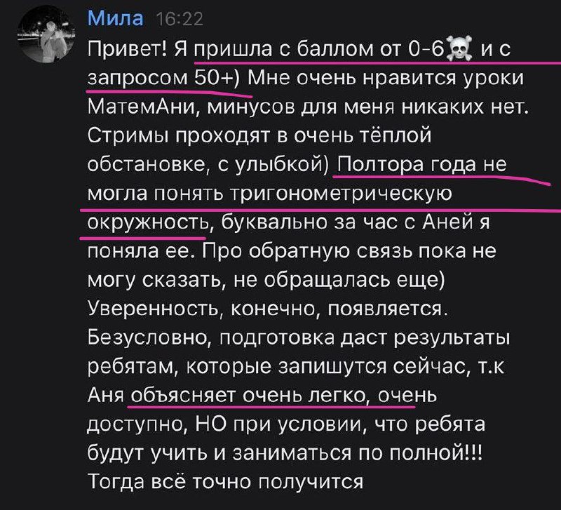 Образование• Готовлю 12 лет к ЕГЭ по профилю и базе. • Каждый 5 сдает ЕГЭ на 85+ • Личный рез-т в 2025: 100б Запись на Экспресс-курс: https://clck.ru/3NiAFe – С нуля и до 80 баллов 100Б №1 по рез-м учеников Вкл РКН в пер перс стр: https://clck.ru/3FJf75 #UWNG4