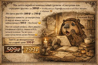 ❗️Ребят, уже в воскресенье первая встреча!! 💳 УСЛОВИЯ УЧАСТИЯ Доступ в книжный клуб — эксклюзив для подписчиков уровня «Смотришь, как страдают другие». 💰 ЦЕНЫ (самое время поторопиться): До 8 ма