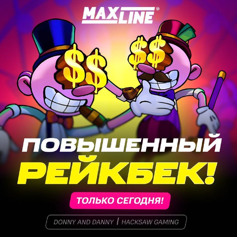 🌠 ПОВЫШЕННЫЙ РЕЙКБЭК сегодня в MAXLINE! 💵Donny and Danny — дуэт, который устраивает кэш-перформанс, Donny тянет значения с Cash Board, а Danny разворачивается в Dollar-Reel с множителями. ➡️ Откро