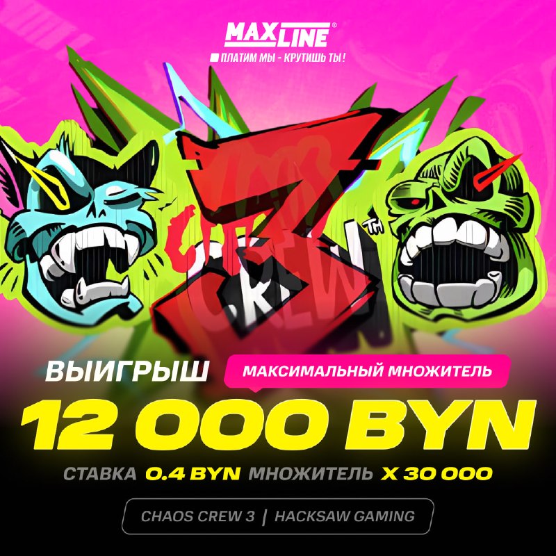 💚 MAXLINE = MAXWIN 💰 ➡️ Видео выигрыша смотреть тут. 3️⃣ Chaos Crew 3 устроили полный анархичный разнос, житель Минска поймал максимум прямо со спина. 💸💵💴💶 ➡️ Играть