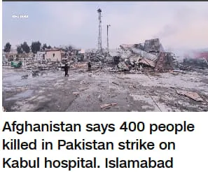 По заявлению минздрава Афганистана, не менее 400 человек погибли и 250 получили ранения в результате пакистанского удара по больнице в Кабуле. Пошел на сайты ООН, ВОЗ - тишина. Молчат Педро Санчес и