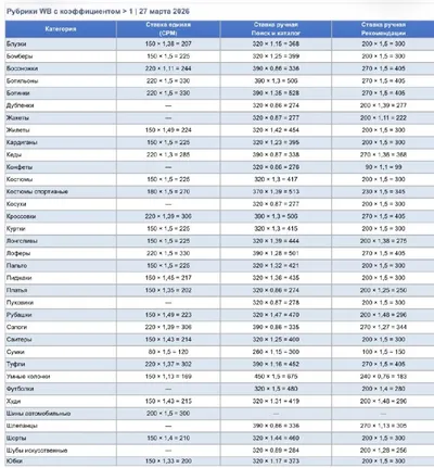 WB ввел в работу повышающий коэффициент на минимальную ставку в РК Еще не по всем категориям. Но где ввел - рост существенный теперь в популярных категориях платить придётся на 30–50% больше, чем