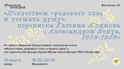 «Искусством «радовать глаз и утешать душу»: переписка Евгения Климова с Александром Бенуа, 1938–1959» На встрече поговорим о впервые опубликованной в полном объёме двадцатилетней переписке художников