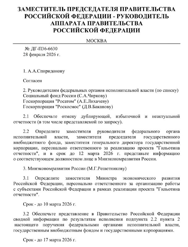 Вслед за «регуляторной гильотиной» грядёт «гильотина отчётности». Вице-премьер – руководитель аппарата Правительства Дмитрий Григоренко призвал отменить дублирующую, избыточную и неактуальную отчетнос