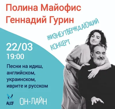 Приходите сегодня в 19.00 по израильскому времени в ютюб. Там будет прямая трансляция ЖИЗНЕУТВЕРЖДАЮЩЕГО КОНЦЕРТА в исполнении Полины Майофис и Геннадия Гурина. Идея таких концертов во время войны п