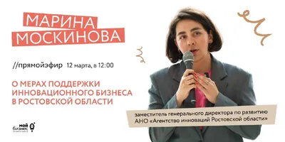 #Безпаузы прямой эфир 12 марта, в 12:00 поговорим о мерах поддержки инновационного бизнеса в Ростовской области А расскажет об этом Марина Москинова - заместитель генерального директора по развитию