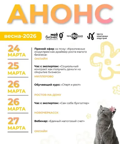 Бизнес и стартапыГосподдержка тут! Мы помогли каждому 9-му предпринимателю Ростова и области: бесплатным консалтингом, обучением, льготными финансами 🤝🏻 >> МЫ НА СВЯЗИ: 🔗ВК -> https://vk.ru/mb_rostov 💻Сайт -> https://mbrostov.ru/ 📞Телефон -> 8 (804) 333-32-31